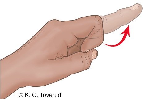 styrke i ekstensjon og fleksjon i MCP, PIP og DIP.
