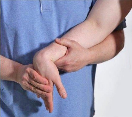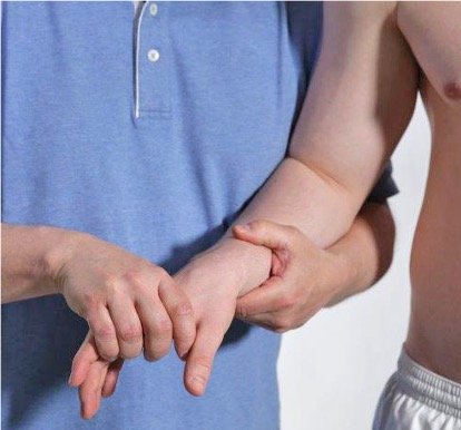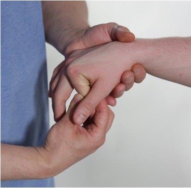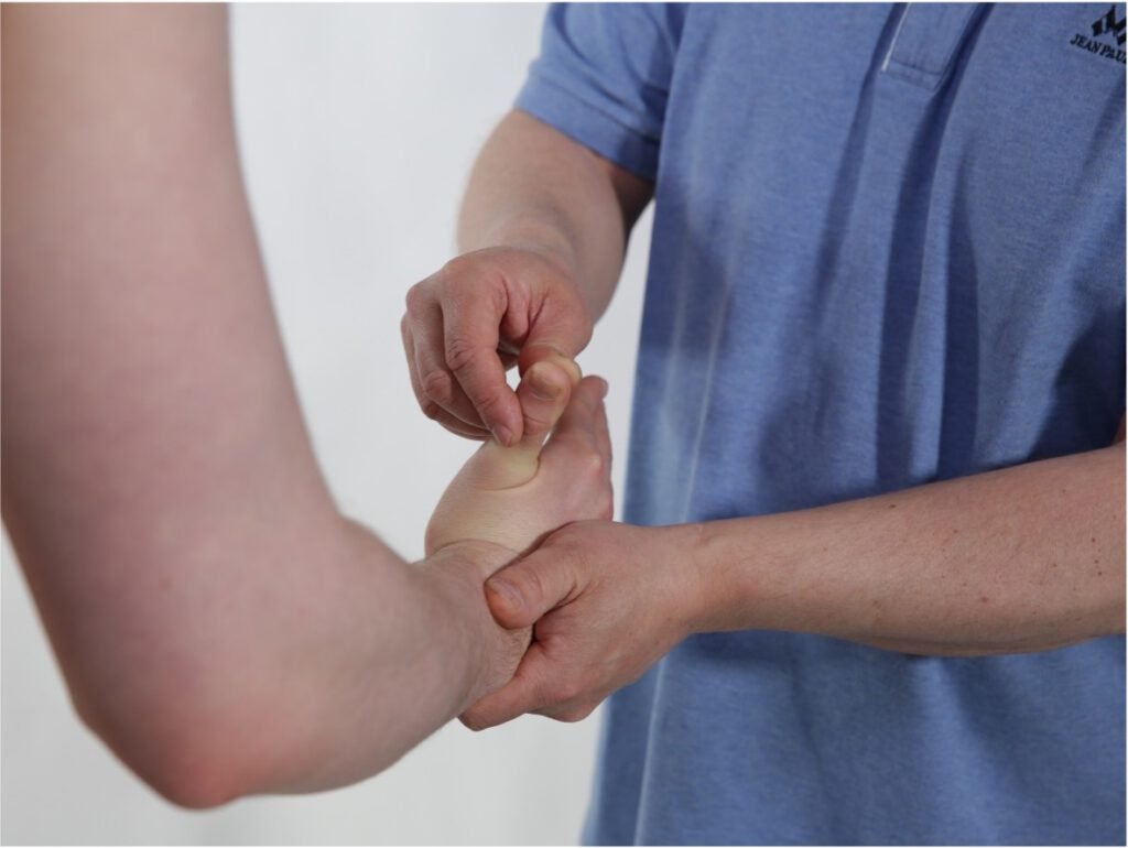 Håndleddet palperes dorsalt og volart for å avklare om det foreligger hevelse og varme eller