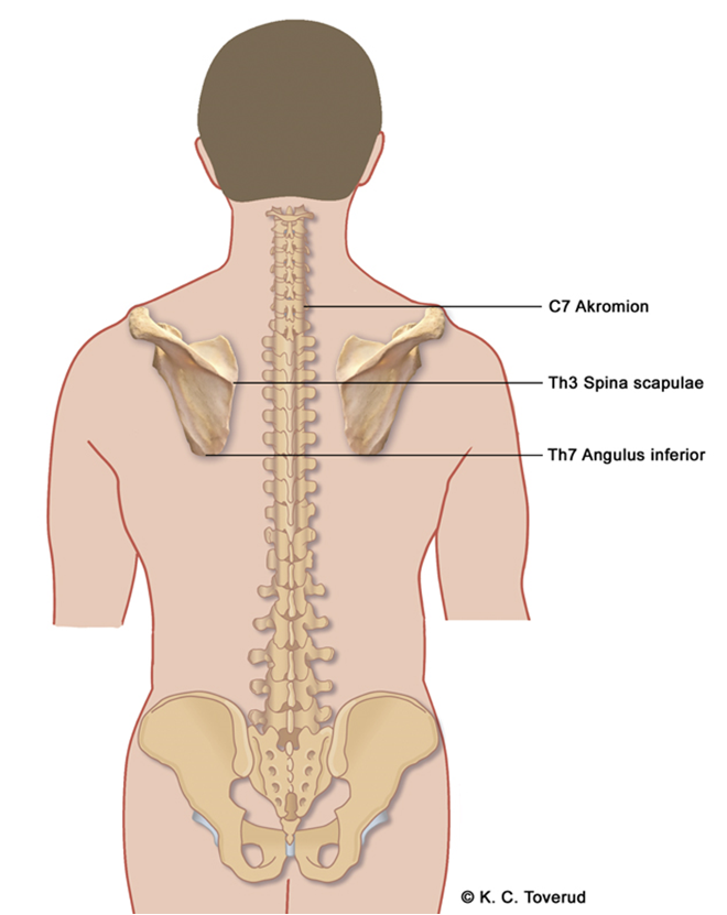 - Fleksjon: To fingerbredder mellom hake og bryst