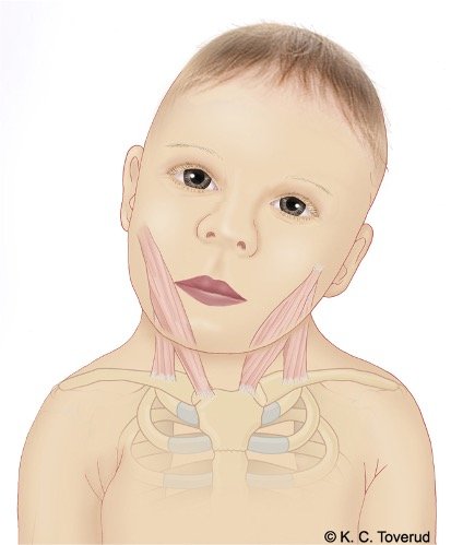 - Muskulære spenninger og forkortning av M. sternocleidomastoideus